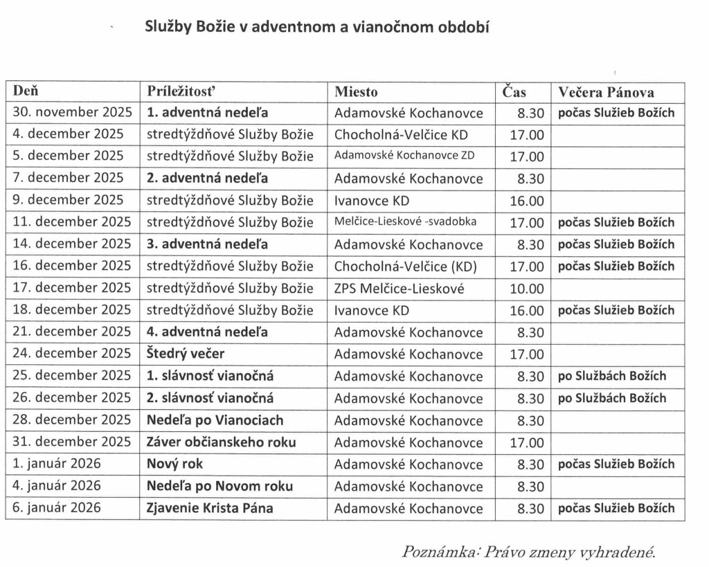 Individuálna pastorálna starostlivosť je stále možná. V prípade záujmu je možnosť spovede a Večere Pánovej v domácnosti alebo individuálne na fare za dodržania všetkých protiepidemických opatrení. Stačí zavolať alebo napísať bratovi farárovi. 0905574190 kochanovce@ecav.sk